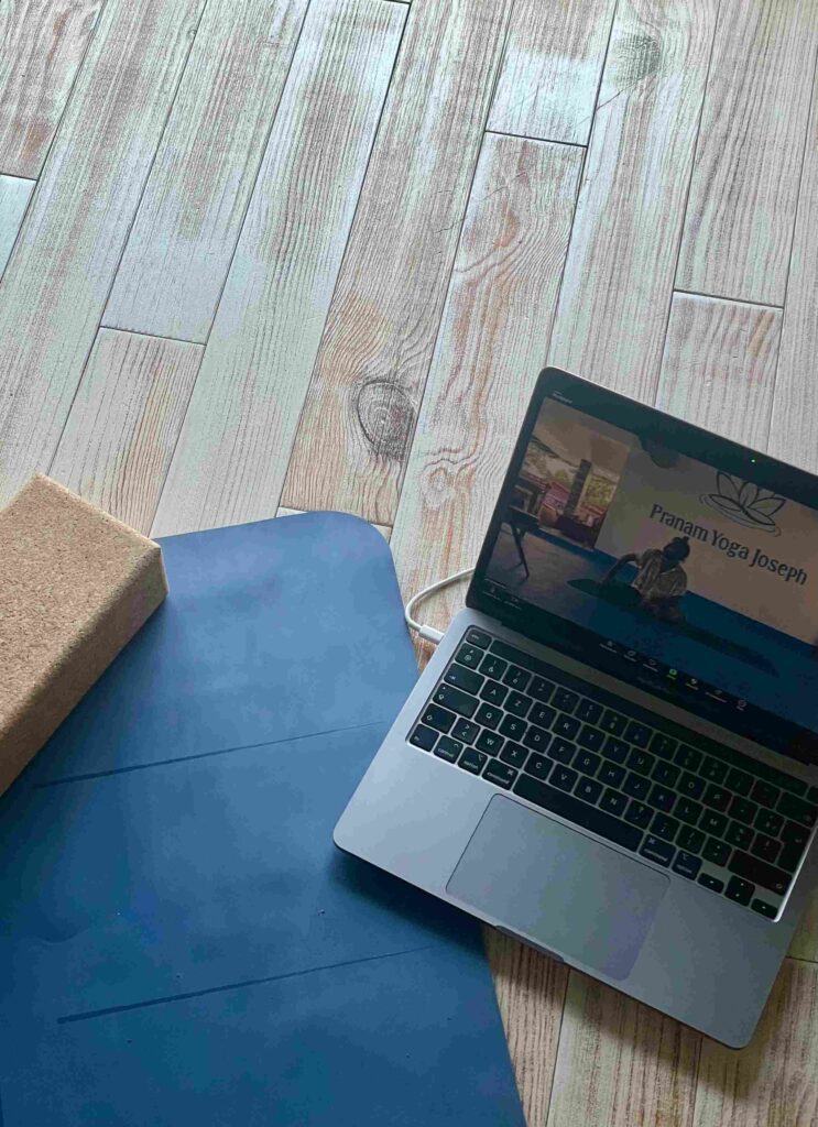 Make sure that your device is working before the class to avoid disruption during the class. and that you have a good internet connection. Get your mat, blocks and a belt, or anything that can help you during the class and keep it near you. To benefit a maximum from the class, if possible isolate yourself from distractions and take that moment for you!