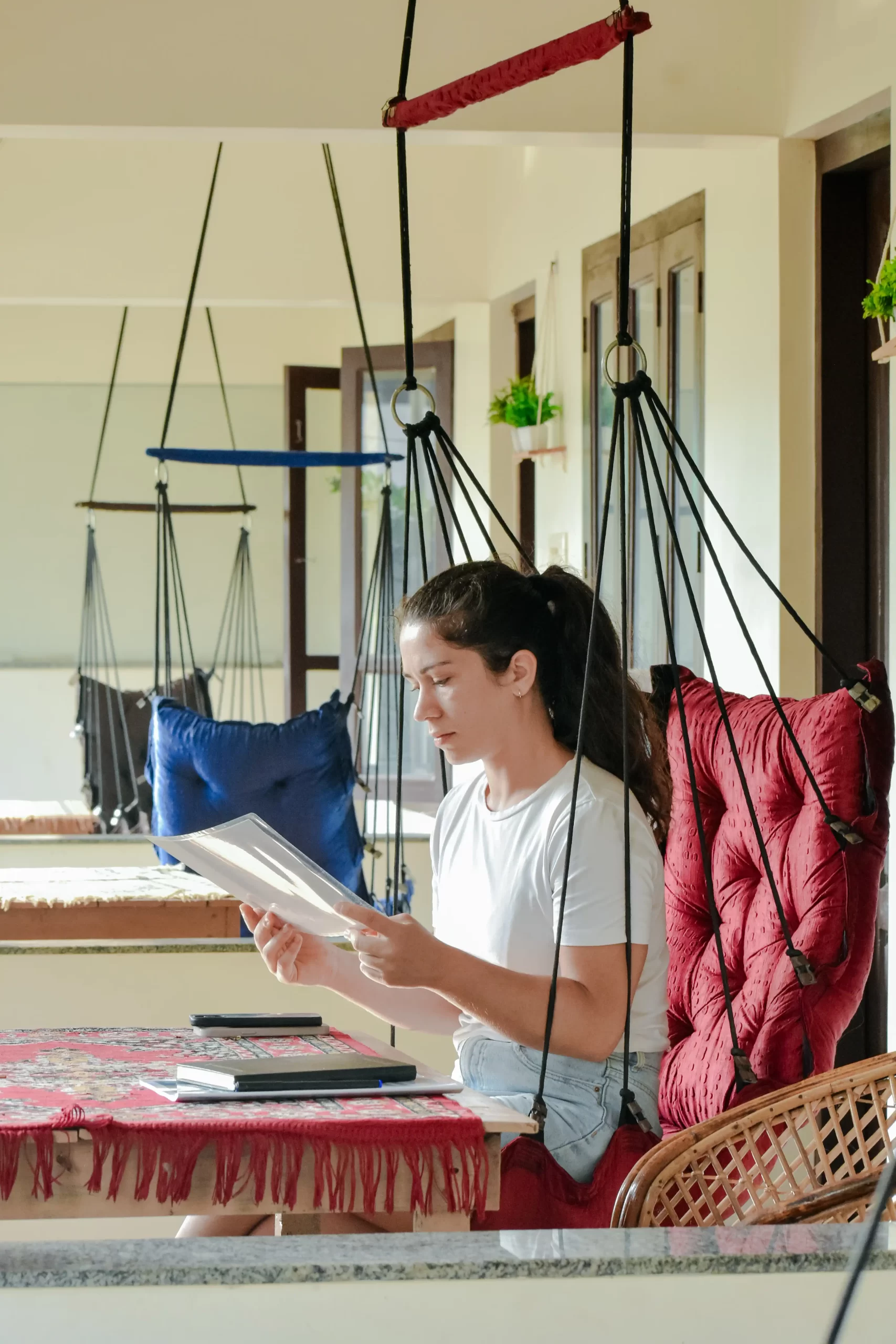Our school is set in a quiet part of Varkala, offering a calm, supportive environment for focused study and steady practice. The surroundings are simple and peaceful, creating a space where students can slow down, breathe deeply, and connect more fully with their learning. Everything here is designed to feel clear, comfortable, and conducive to sincere practice