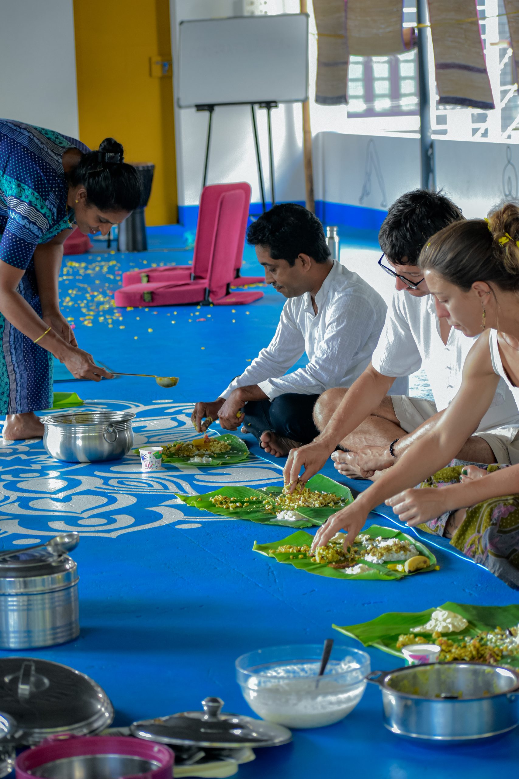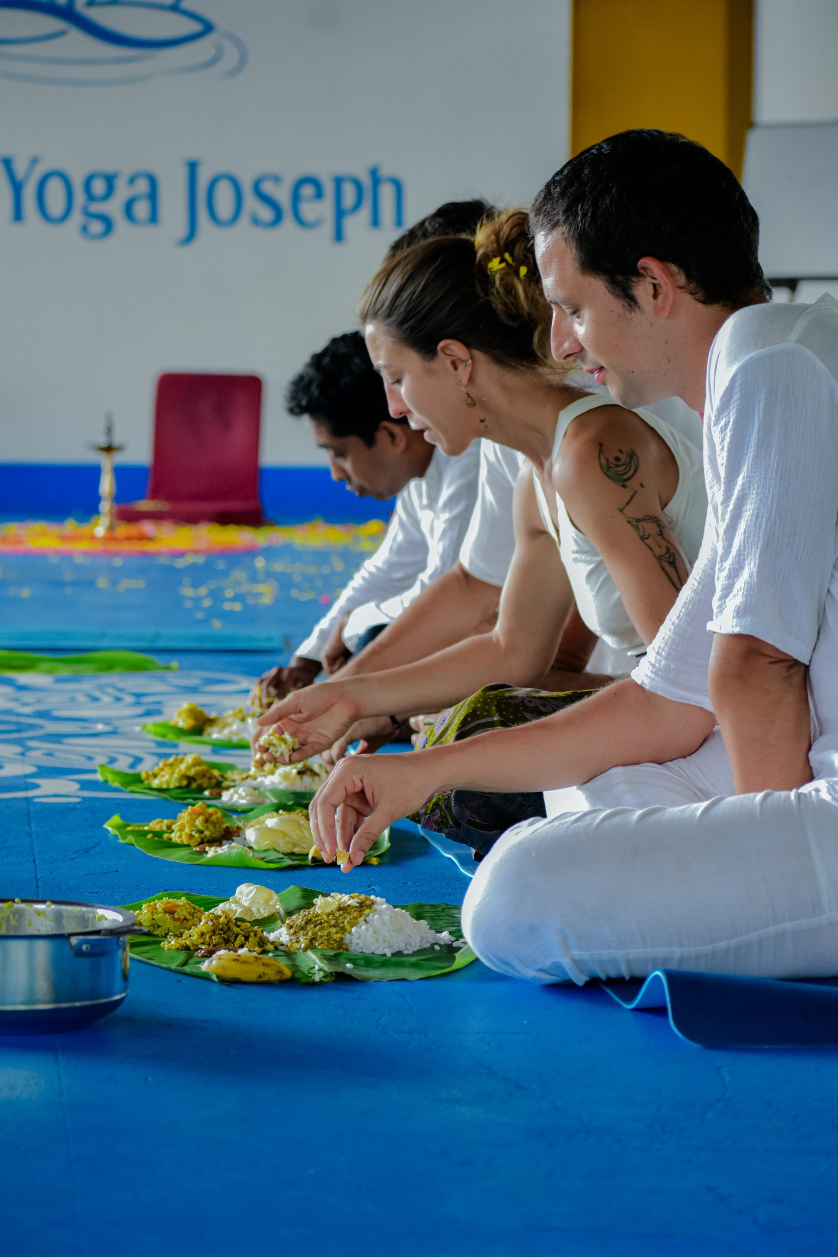 All meals are prepared in-house with care, using traditional Indian and Kerala vegetarian recipes. We serve three meals a day, including a light lunch to support comfortable practice. The food is made with fresh local vegetables, legumes, seasonal fruits, and homemade spices, keeping each meal simple, nourishing, and easy to digest. Our aim is to provide clean, balanced food that supports your energy and focus throughout the training