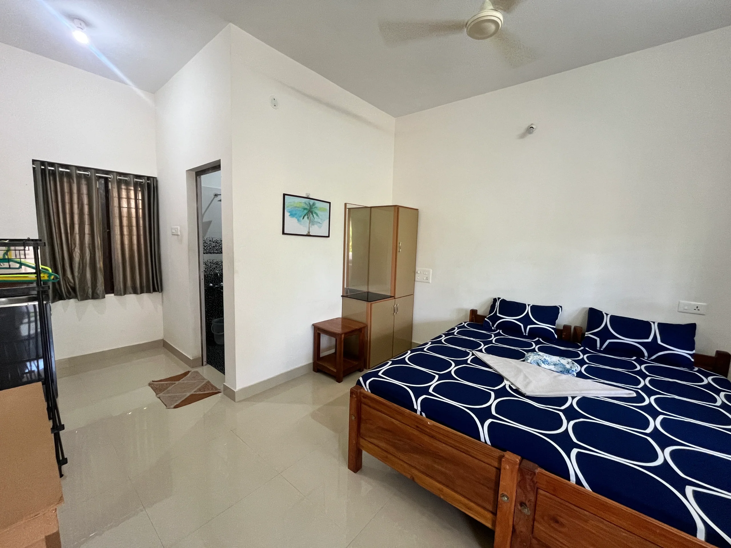 Our accommodation is simple, comfortable, and arranged to support focused study. Each room includes a private bathroom with hot water, clean bedding, towels, and basic amenities. All rooms are well-ventilated and equipped with a fan, with AC available depending on the option you choose. WiFi is provided, and regular cleaning is available to keep your space tidy throughout the course. Located close to the shala, the rooms offer a quiet and convenient environment for rest and practice.
